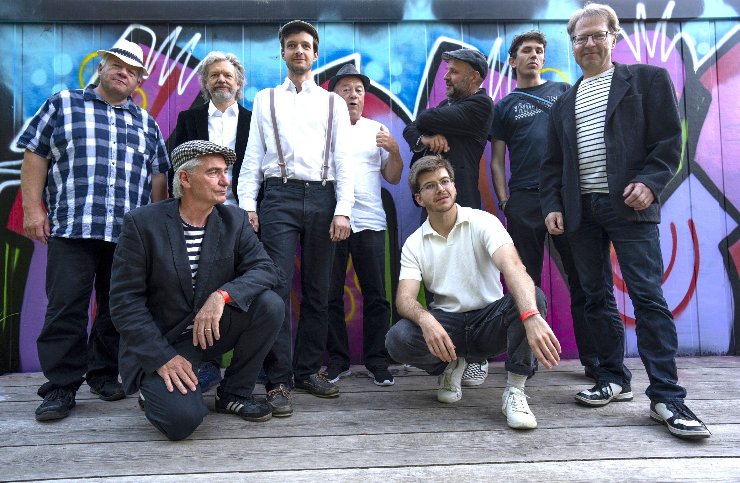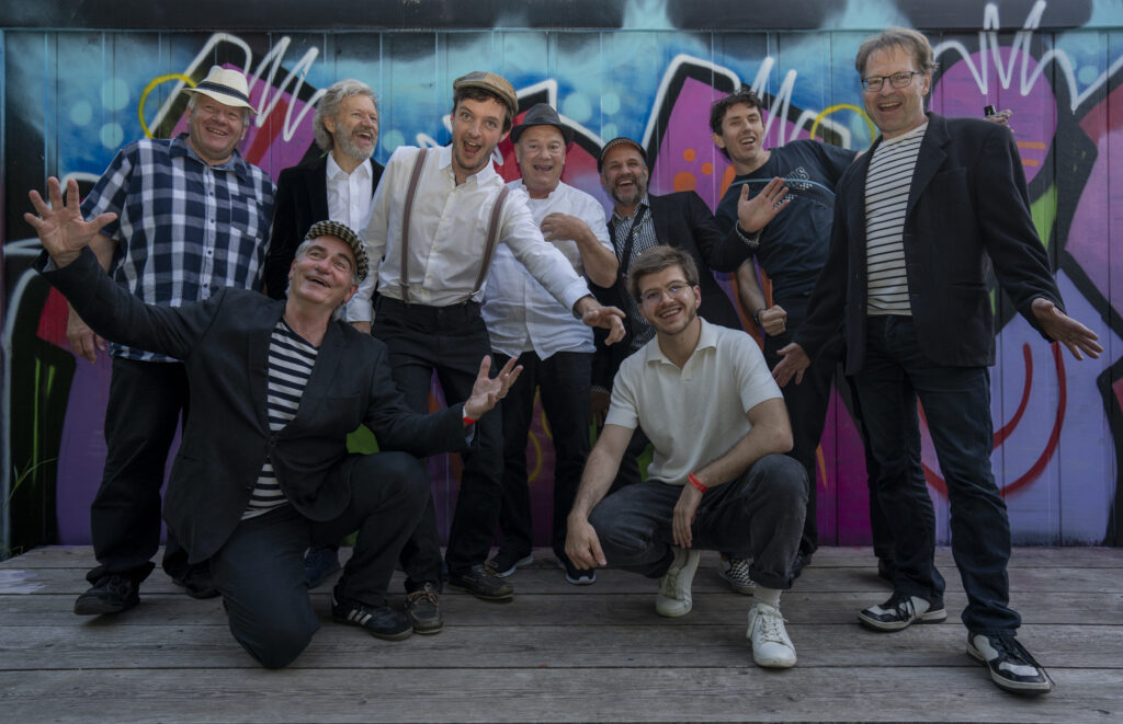 Peter Trachsel – p/acc, Florian Widmer – tp, Adrian Balmer – sax/voc, Benjamin Reinhard – dr, Leo Hurni – tb, Adi Rudin – b, Roland Wüthrich – perc, João Machado Santos – sax, Häne Novell – git/voc